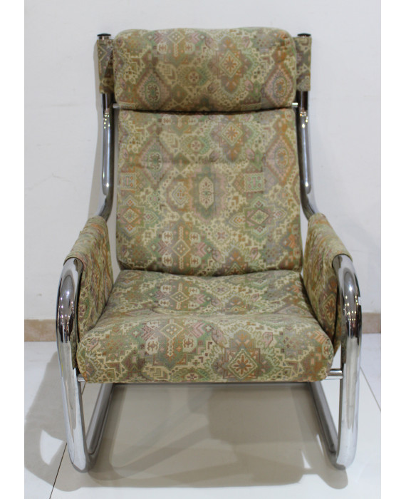 Coppia di poltrone con struttura in tubolare di acciaio con seduta e spalliera in stoffa