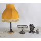 Lotto di una dea bendata in metallo argentato, su base in legno, firmata sul retro Fabris ed una lampada da tavolo, un accendino da tavolo ed un'alzatina, con parti in argento 800 (difetti)