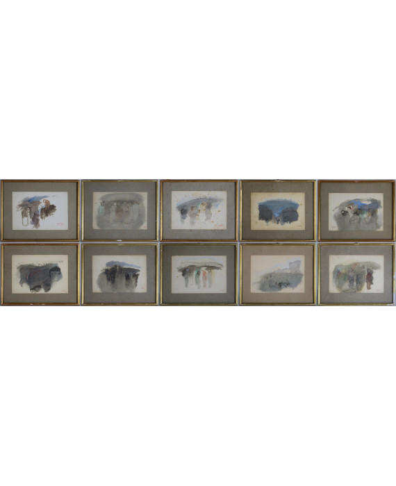 Signature firme in basso a destraTechnique: Serie di 10 disegni a tecnica mista su cartaSize: cm17,5x24