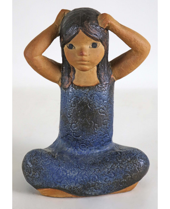 Lisa Larson (1931-2024). Thailandska. Statuina in terracotta smaltata, firmata sul fondo Lina L. Gustavsberg, Sweden 79, Club italiano Gustavsberg. Alt. cm31