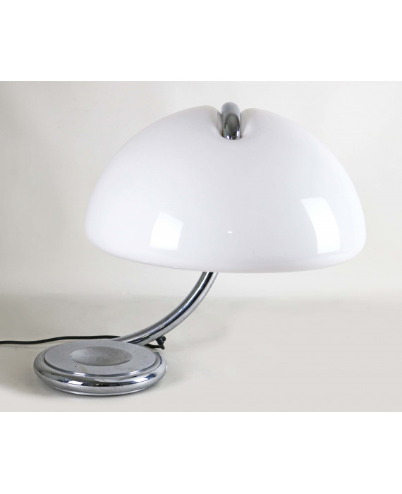 Elio Martinelli (1912-2004). Lampada Serpente, modello 599 per Martinelli Luce, anni '60. Lampada da tavolo con struttura in tubolare metallico regolabile e paralume semisferico in plexiglass opalino. Alt. cm50 (piccole ossidazioni)