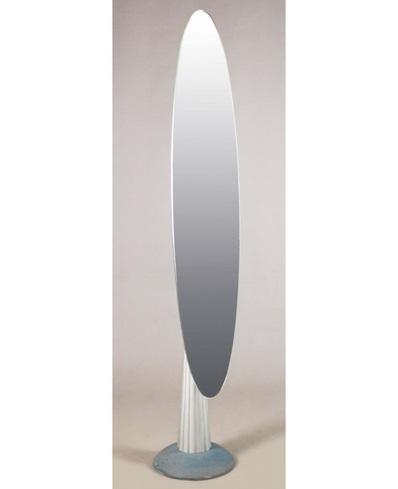 Matteo Thun (1952). One floor mirror. Specchiera da terra di forma ellittica con base e sostegno in alluminio verniciato, Produzione Kartell, anni '90. Alt. cm182