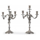 Coppia di candelabri a quattro fiamme in argento 800, argentiere Pasotto, lavorato a volute vegetali e conchiglie. Peso tot. gr. 3970. Alt. cm44