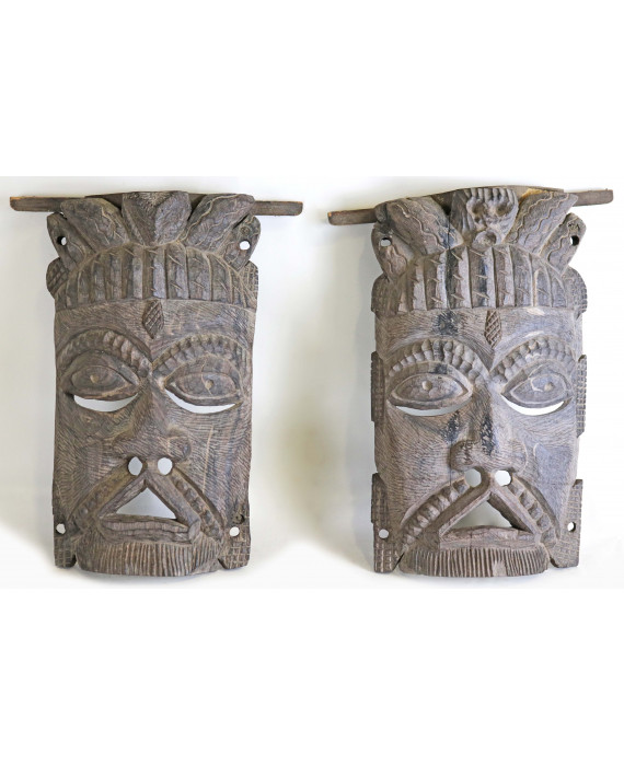 Lotto di due maschere africane in legno scolpito. cm50x29x10