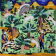 Lotto di tre placche in maiolica dipinta con scena di caccia, Atlante che sorregge il mondo e cavaliere con blasoni. Manifattura di Gubbio del sec. XX, due firmate GM. cm33x33;cm40x40;cm30x20