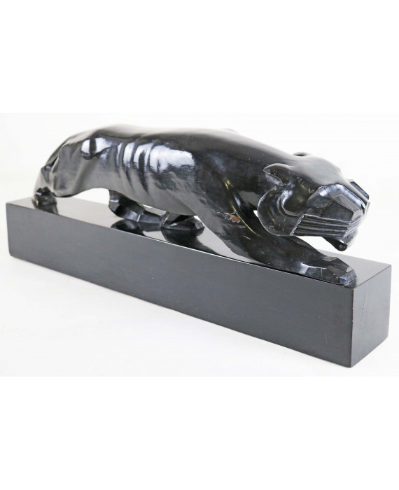 Pantera in legno ebanizzato su base. Francia, periodo Decò. cm22x59x10 (lievi usure del tempo)