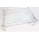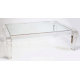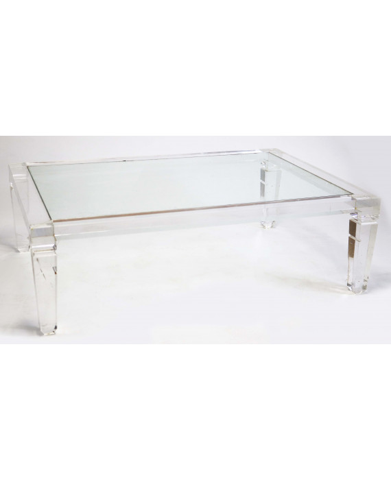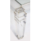 Tavolo con struttura in plexiglass trasparente con piano in vetro e gambe piramidali. cm40x131x90 (usure del tempo)