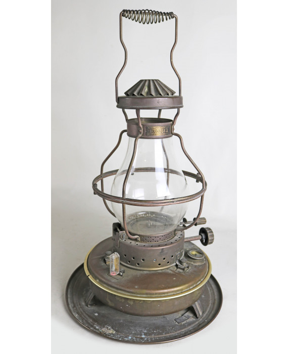 Lanterna da nave a cherosene, con struttura in ottone e paralume in vetro. Alt. cm54