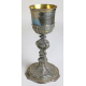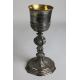Calice in argento lavorato a volute vegetali, fusto costolato, base mistilinea, coppa a corpo liscio con interno in vermeille. Bolli Roma, inizi sec. XVIII. Alt. cm27. Peso gr. 590 (argentiere non leggibile) (restauro)