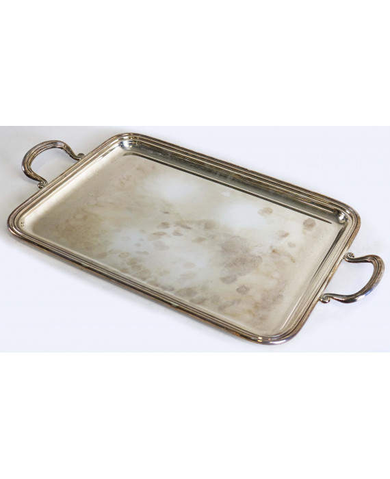 Vassoio rettangolare biansato, in argento 800. Peso gr. 1800
