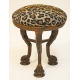 Sgabello in bronzo patinato, tre sostegni a zampa ferina raccordati da traversa a crociera, seduta movibile rivestita in tessuto leopardato. Probabile manifattura della fonderia Chiurazzi Napoli, corrispondente al modello n. 458 del catalogo delle Officine Chiurazzi. Alt. cm41; diam. cm40