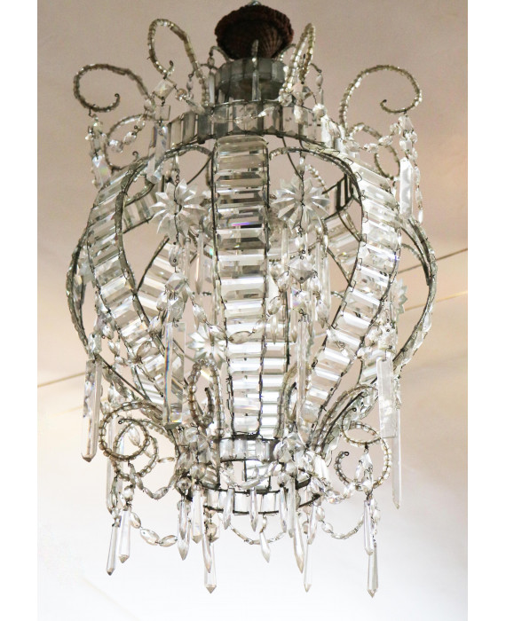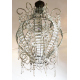 Lampadario a mongolfiera con struttura in metallo, tasselli, pendenti e perline in vetro (lievi difetti)