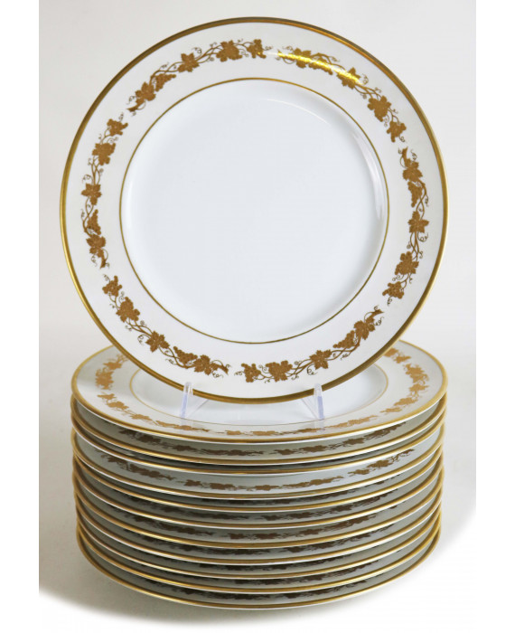 Servizio di 12 sottopiatti in porcellana marcata Richard Ginori, decorati in oro con tralci d'uva. Diam. cm31