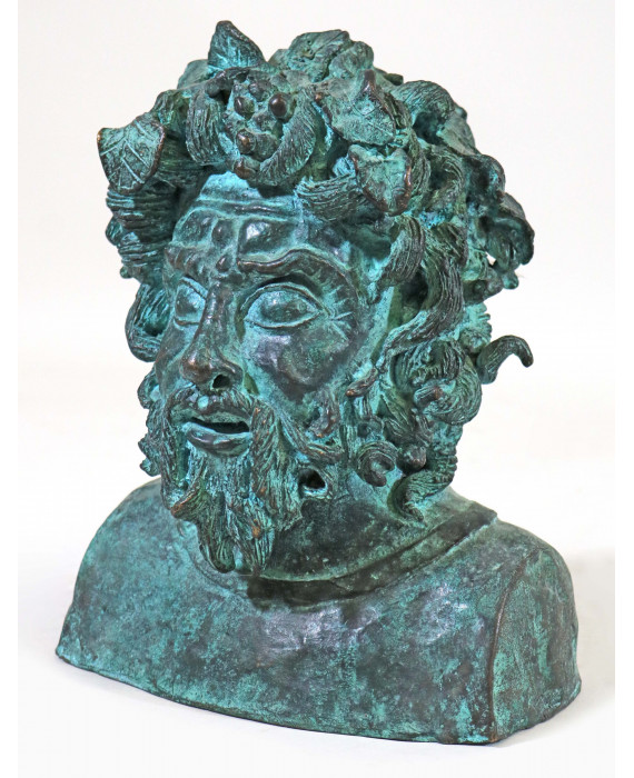 Omero Bordo (Tarquinia 1943-2018). Busto di Fufluns (Bacco) in bronzo patinato. Alt. cm25
