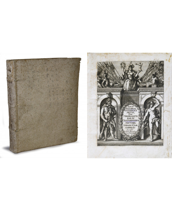Aspasio Caramuelio (pseudonimo di Gaspar Schott). Ioco seriorum naturae et artis sive magiae naturalis centuriae tres. Wurzburg, 1666. Volume con legatura in cartonato, frontespizio allegorico inciso, 22 tavole fuori testo, tav. XV a pag. 117. (lievi difetti al frontespizio)