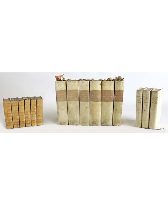 Lotto di tre opere: Francesco Fontani. Viaggio pittorico della Toscana. Edizione terza. Firenze. Per Vincenzo Batelli e comp.º 1827. Opera in sei volumetti; Giovanni Battista Carta. Manuale di geografia moderna universale. Milano, per Antonio Fontana. 1826-27. Opera in tre volumetti; Emanuele Repetti. Dizionario geografico fisico storico della Toscana. Firenze, presso l'autore e editore coi tipi di A. Tofani. 1833-46. Opera in cinque volumi e un supplemento completo delle tavole genealogiche.