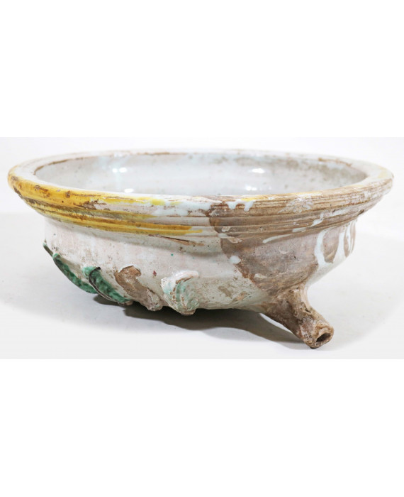 Gocciolatoio in maiolica lavorata a bassorilievo con motivo di foglie. Orvieto, sec. XVII/XVIII. Diam. cm32