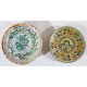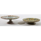 Lotto di due alzate in maiolica dipinta con serti vegetali e fiori. Area urbinate, sec. XVIII. Diam. cm23/24 (restauri e scheggiature)