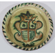 Piatto in maiolica graffita con stemma araldico e dipinta nei toni del verde . Italia centrale, sec. XVIII. Diam. cm34