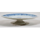 Alzatina in maiolica a fondo bianco dipinta in blu con uccellino tra i fiori e riserva vegetale sulla tesa. San Quirico Dorcia, sec. XVIII. Alt. cm6, Diam. cm29 (mancanze alla base e scheggiature al bordo)