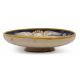 Alzatina in maiolica dipinta in blu cobalto e giallo con draghi intrecciati, sormontati da un putto alato, che inquadrano un motto parzialmente leggibile ed un stemma araldico, ai lati targa S.P.Q.R., data 1545 e trionfi d'armi. Castel Durante, sec. XVI. Diam. cm22 (abrasioni al bordo, restauro pittorico centrale e antico restauro con grappa a filatura posteriore)