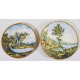 Lotto di due piatti in maiolica dipinta con paesaggio lacustre e caseggiati, marchio illeggibile graffito sul retro, e scena mitologica con veduta, marchio dipinto sul retro. Castelli, sec. XIX. Diam. cm24/23