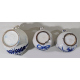 Lotto di tre brocche similari in maiolica a fondo bianco dipinte in blu con rami fioriti. Genoa, sec. XIX. Alt. cm19/15(2) (scheggiature e mancanze)
