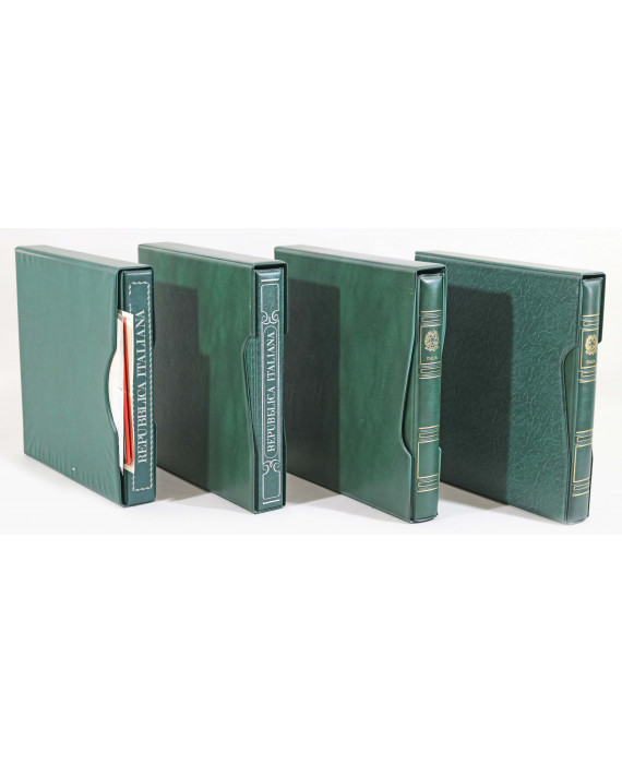 Lotto di quattro album Marini contenenti numerosi francobolli del Regno d'Italia e della Repubblica Italiana, tra cui lire 30 azzurro e lire 100 carminio scuro della serie Democratica del 1946-1947, lire 20 e 50 dedicati alla conferenza internazionale di Radiodiffusione del 1950, lire 100 del centenario della Repubblica Romana del 1949 e la serie completa dei Gronchi. Alcuni francobolli completi di certificato fotografico