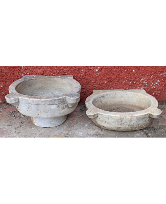 Lotto di due vasche in marmo bianco. cm25x46x38/16x48x39 (filatura e scheggiature)