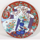 Grande piatto da parata in porcellana dipinta con rami fioriti, ceste di frutta e paradisee. Giappone, sec. XX. Diam. cm47
