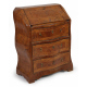 Piccola ribalta impiallacciata in legno di noce, calatoia con allinterno quattro cassettini e sportello, tre cassetti inferiori, fronte laterali mossi. cm95x75x40 (difetti)