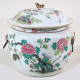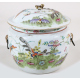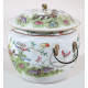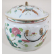 Vaso con coperchio in porcellana dipinta con farfalle e rami fioriti. Cina famiglia verde, sec. XIX. Alt. cm20