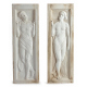 Coppia di lesene in marmo bianco scolpite a bassorilievo con figure neoclassiche. Italia, periodo Decò. cm97x32x5