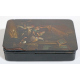 Tabacchiera in legno ebanizzato e dipinta raffigurante scena di osteria alla maniera di Adriaen van Ostade, o Adriaen Hendricx (10 dicembre 1610 – 2 maggio 1685), all'interno antiche iscrizioni "La cabane flamande ( Ostade)"; -6543- Stobwasser Fabrik in Braunschweig, con chiavetta. cm9x6,5