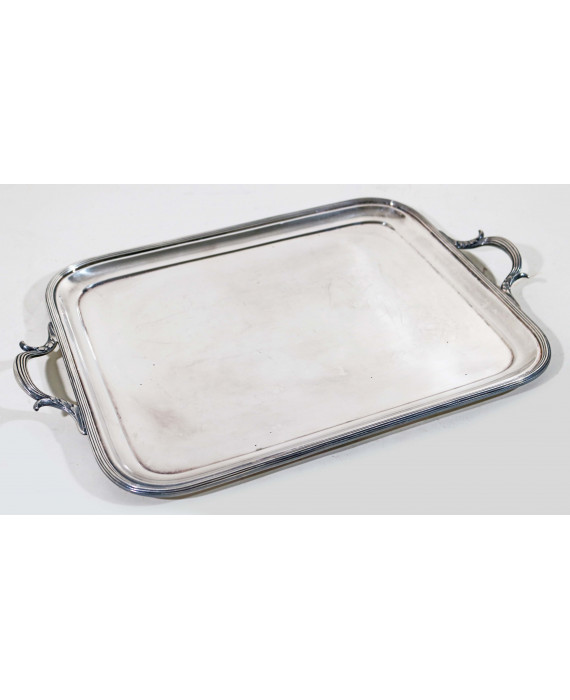 Vassoio biansato in argento 800. Bolli periodo del fascismo, argentiere Fulvio Cappelli. Peso gr. 2900