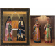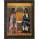 Lotto di due icone a tempera su tavola: Due Santi vescovi ortodossi che sorreggono un'immagine sacra della Madre di Dio con il Bambino; Due Santi ortodossi (Sant'Attanasio?/Santo Cirillo?). Russia sec. XIX/XX