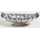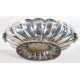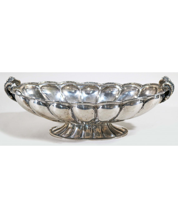 Elegante centrotavola in argento 800 a corpo baccellato con anse a voluta. Peso gr. 1540