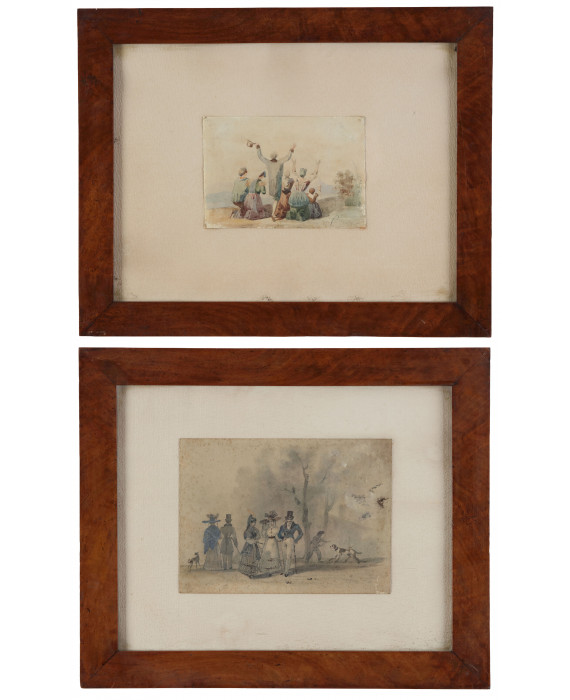Firma firme parzialmente leggibiliTecnica: Lotto di due acquarelli su cartaDimensioni: cm13x18/16x22