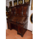 Grande mobile scrittoio lastronato in legno di mogano, due sportelli superiori e calatoia centrale con all'interno vani a giorno e cassettini, sportello a rullo con piano scorrevole, parzialmente foderato in pelle, cassettini e vani, quattro cassetti inferiori con due sportelli laterali, quattro sportelli laterali e due tiretti. Inghilterra, sec. XIX. cm192x153x83 (difetti e mancanze)
