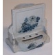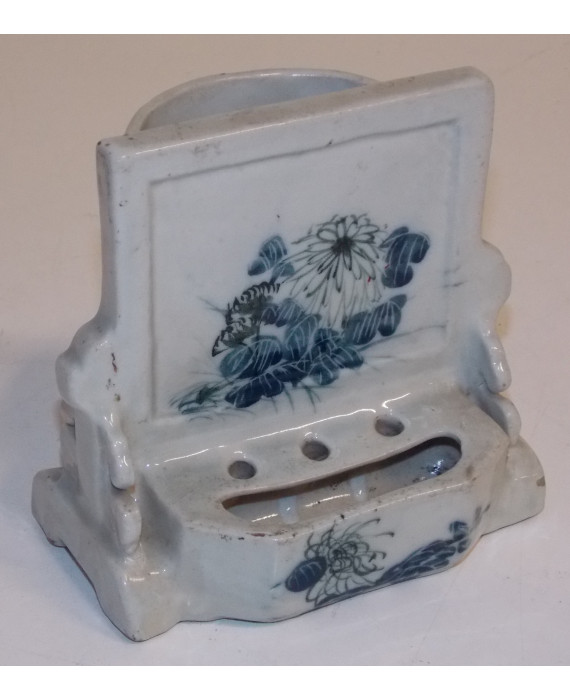 Calamaio in porcellana a fondo bianco dipinta in blu con fiori. Cina, fine sec. XIX. cm12x12x8