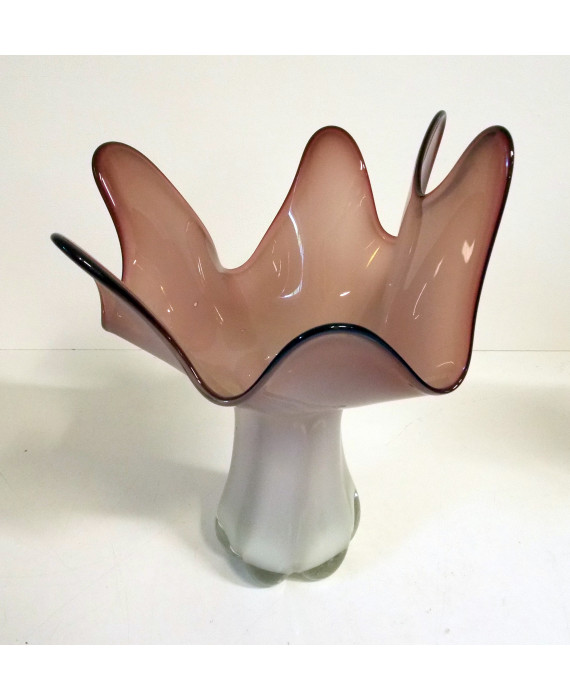 Vaso a fazzoletto in vetro opaline nei toni del rosa. Alt. cm40