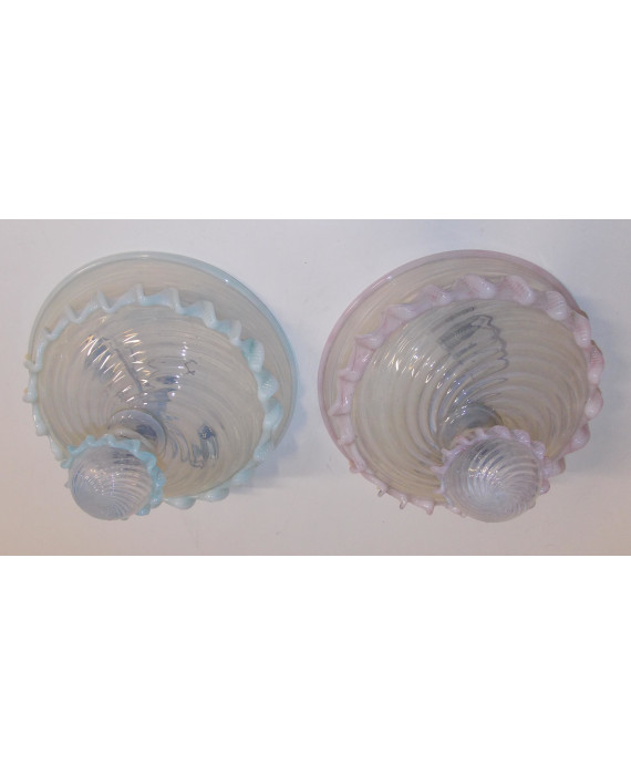 Coppia di plafoniere in vetro di Murano decorate nei toni del rosa e dell’azzurro. Diam. cm27