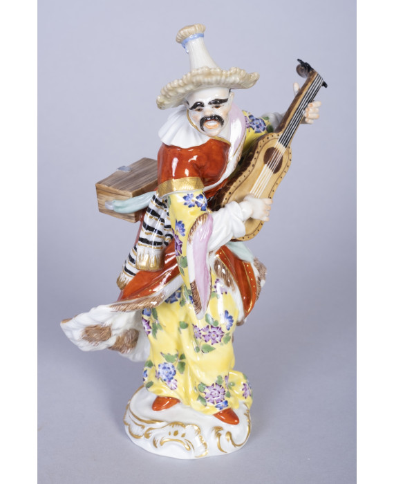 Statuina in porcellana policroma raffigurante musico del Malabar, marcato sul fondo Meissen. Alt. cm18