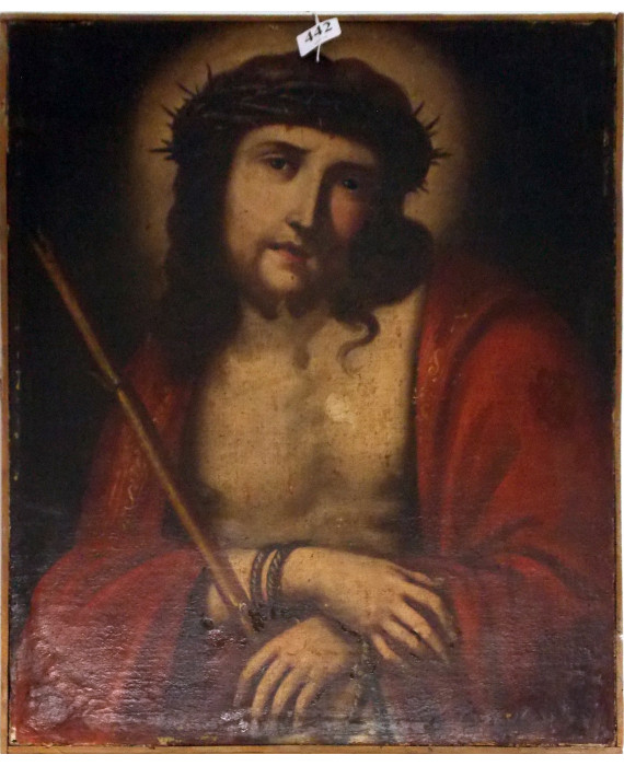 Italian school of 17/18th century. Ecce Homo. Oil on canvas, cm68x52