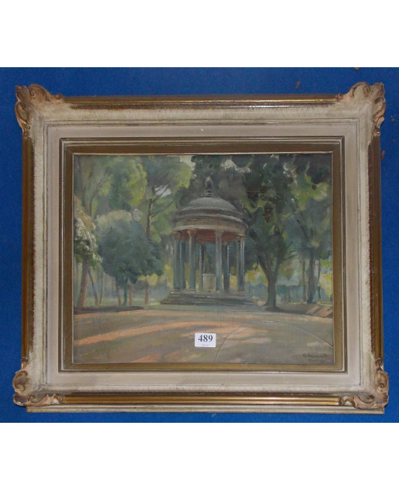 Alessio Patarnesi. View of Villa Borghere, Rome. Oil on cardboard, signature at the bottom right and on the back, with frame. cm 35,5x46