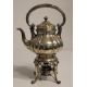Bollitore in argento 800 con corpo costolato e peducci a voluta, completo di fornelletto. Peso tot. gr. 1380