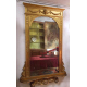 Grande specchiera da appoggio in legno dorato e lavorato con volute vegetali, festoni floreali, mascheroni e grifoni. cm222x143 (mancanze alla doratura)