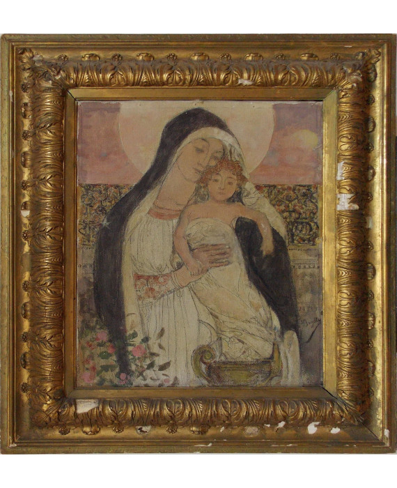 Signature firma in basso a destraTechnique: Olio e matita su tela applicata su cartoneSize: cm 59x46