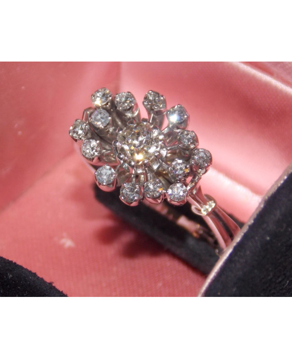 Anello in oro bianco 18kt con diamanti taglio antico e 8/8. Peso tot. gr. 9,1. Allegata dichiarazione di autenticità del gemmologo Gianfranco Rotisciani