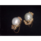 Paio di orecchini in oro giallo 18kt con diamanti taglio brillante e perle ovali naturali irregolari. Peso tot. gr. 12,90. Allegata dichiarazione di autenticità del gemmologo Gianfranco Rotisciani